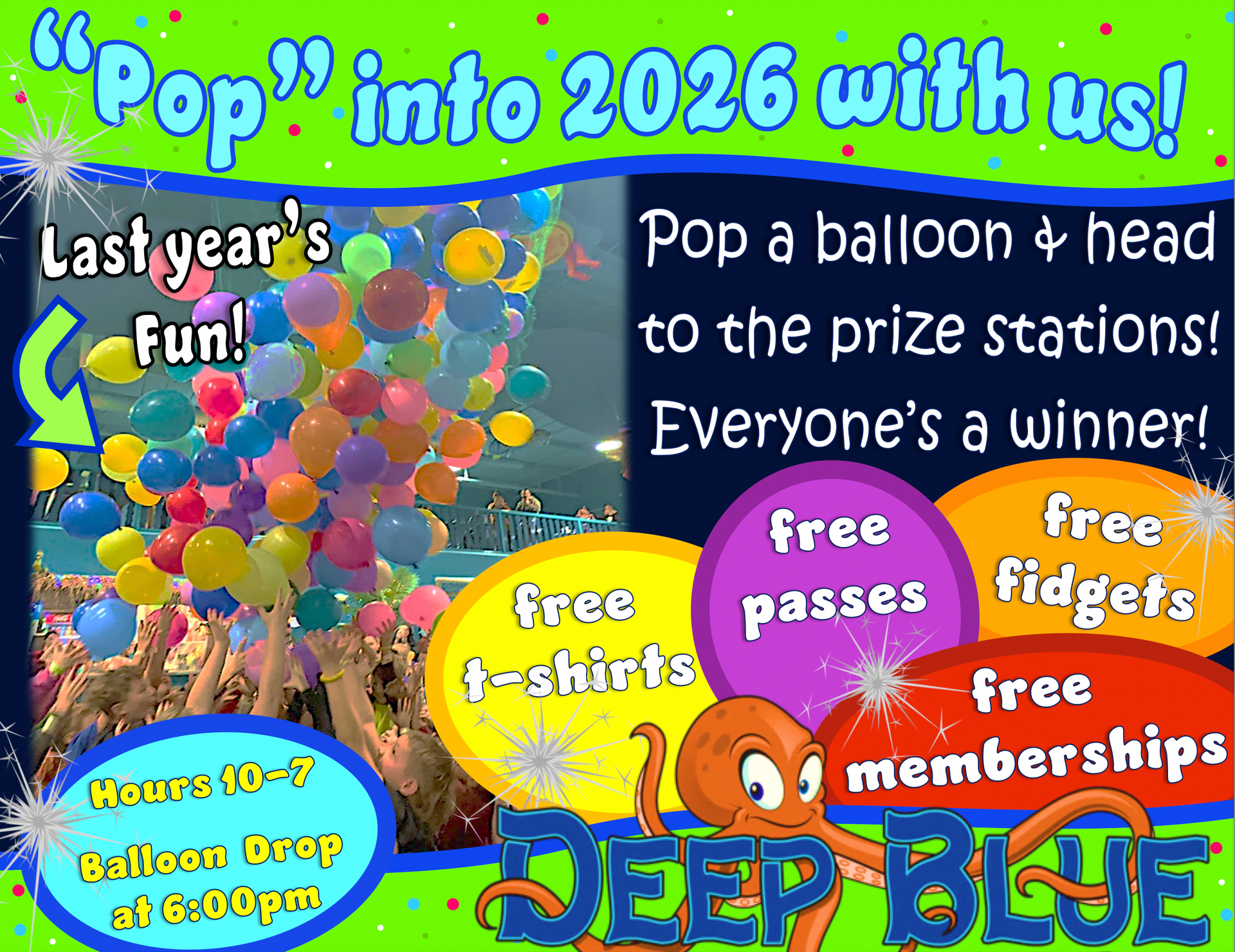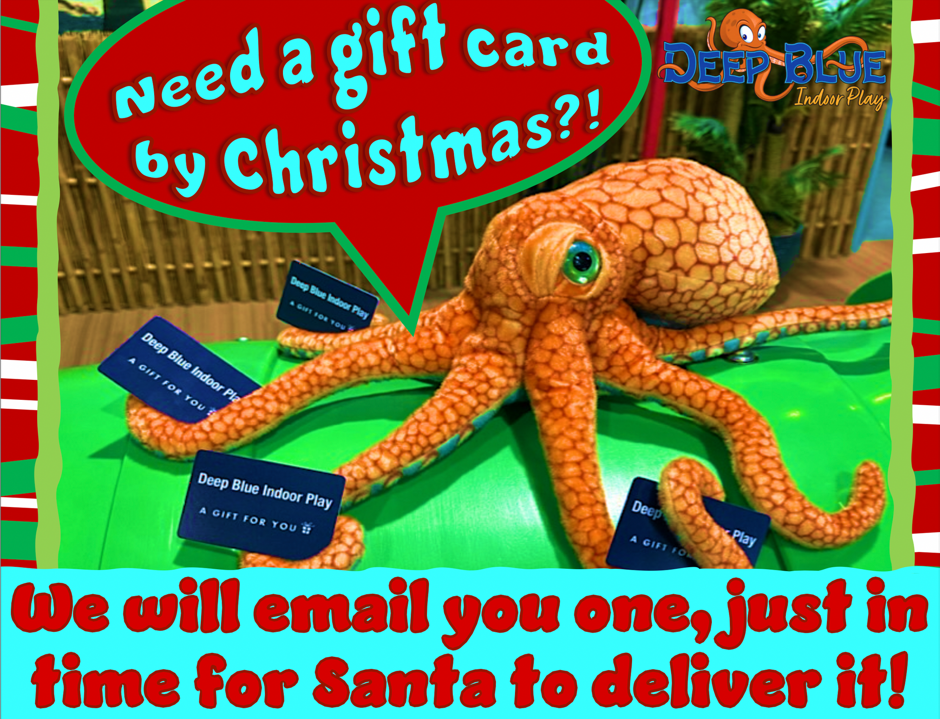 Deep Blue Indoor Play is the area’s most exciting indoor playground, filled with unique play features unseen anywhere else around! This 15,000 sq ft facility brings to life a space for imaginative fun with an under the sea feeling. As a local family owned business, it is our pleasure to bring to you a family friendly, safe atmosphere that specializes in daily walk-in play, birthday parties, and field trips for children 2-13 years of age.